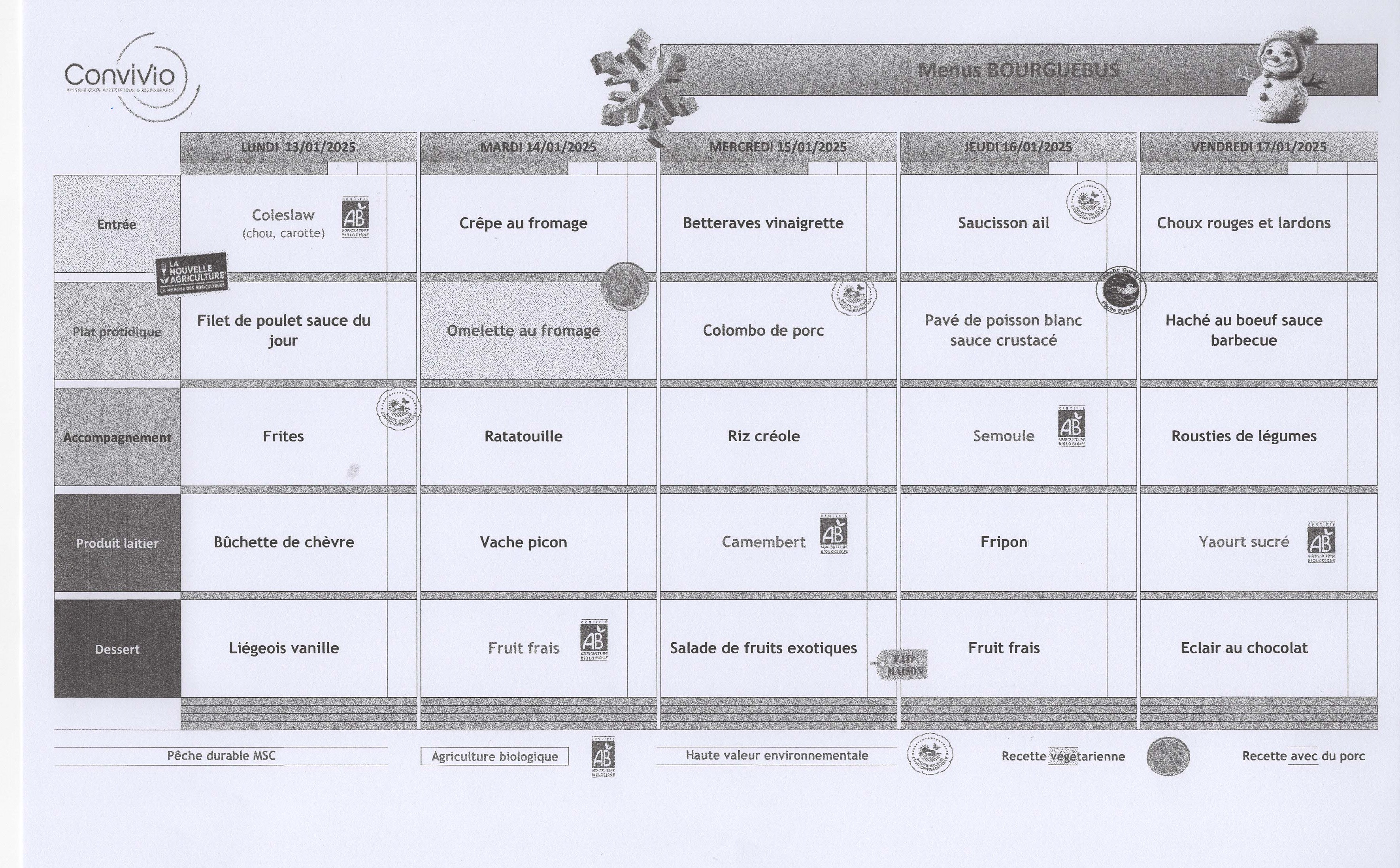 Menu du 13 au 17 janvier restauration scolaire et mercredi loisirs